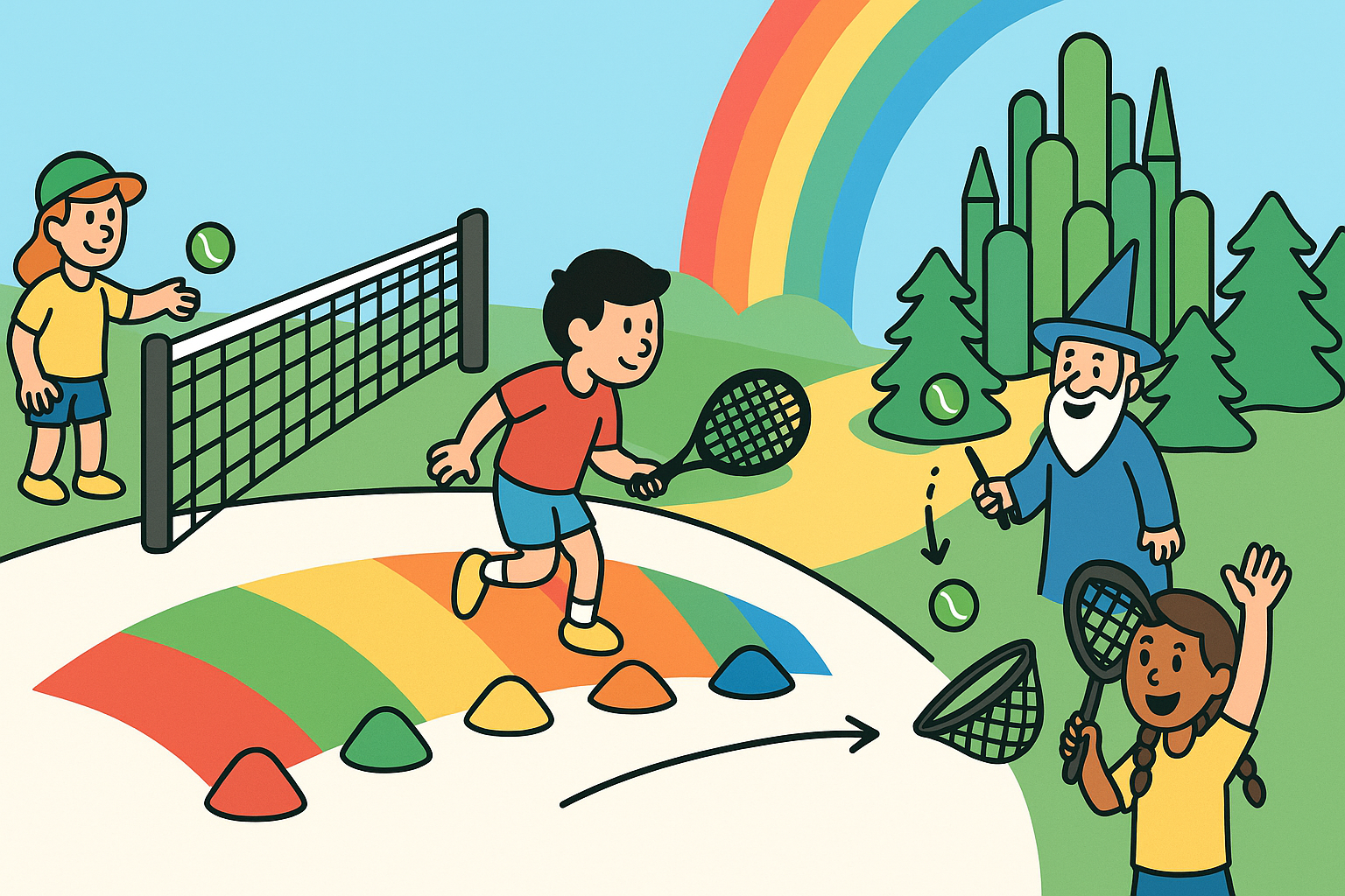 🧠 Focus: sideways footwork · forehands/backhands · tracking · confidence