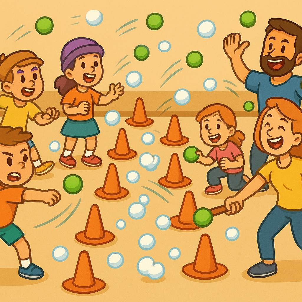 A fast, fun, safe throwing game using soft balls only.